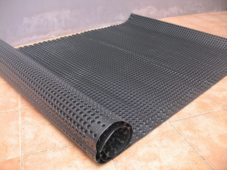 排水板是由聚苯乙烯(HIPS)或者是聚乙烯塑胶底板经过冲压制成圆锥突台(或中空圆柱形多孔)而成。圆锥突台的顶面胶接一层过滤土工布,以阻止泥土微粒通过,从而避免排水通道阻塞使孔道排水顺畅.传统的排水方式使用砖石瓦块作为导滤层、使用较多的鹅卵石或碎石作为滤水层、将水排到指定地点。而现在用排水板取代鹅卵石滤水层来排水则省时、省力又节能、节省投资、还能降低建筑物的荷载。