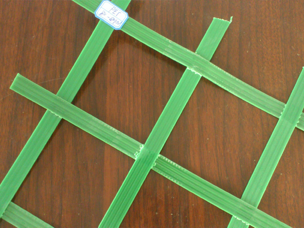PET聚酯雙向拉伸焊接土工格柵以聚酯為主料,加入抗老化劑和其他助劑,經過低倍數機械拉伸成精製肋條,按平面經緯成直角,經超聲波特殊焊接成型的土工合成材料,根據工程需要來用不同網孔直徑及肋條寬度、厚度來改變筋帶的拉力大小。