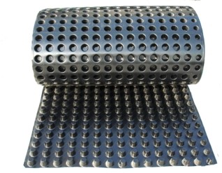 排水板是由聚苯乙烯(HIPS)或者是聚乙烯塑膠底板經過衝壓製成圓錐突台(或中空圓柱形多孔)而成。圓錐突台的頂面膠接一層過濾土工布,以阻止泥土微粒通過,從而避免排水通道阻塞使孔道排水順暢。 傳統的排水方式使用磚石瓦塊作為導濾層、使用較多的鵝卵石或碎石作為濾水層、將水排到指定地點。而現在用排水板取代鵝卵石濾水層來排水則省時、省力又節能、節省投資、還能降低建築物的荷載。